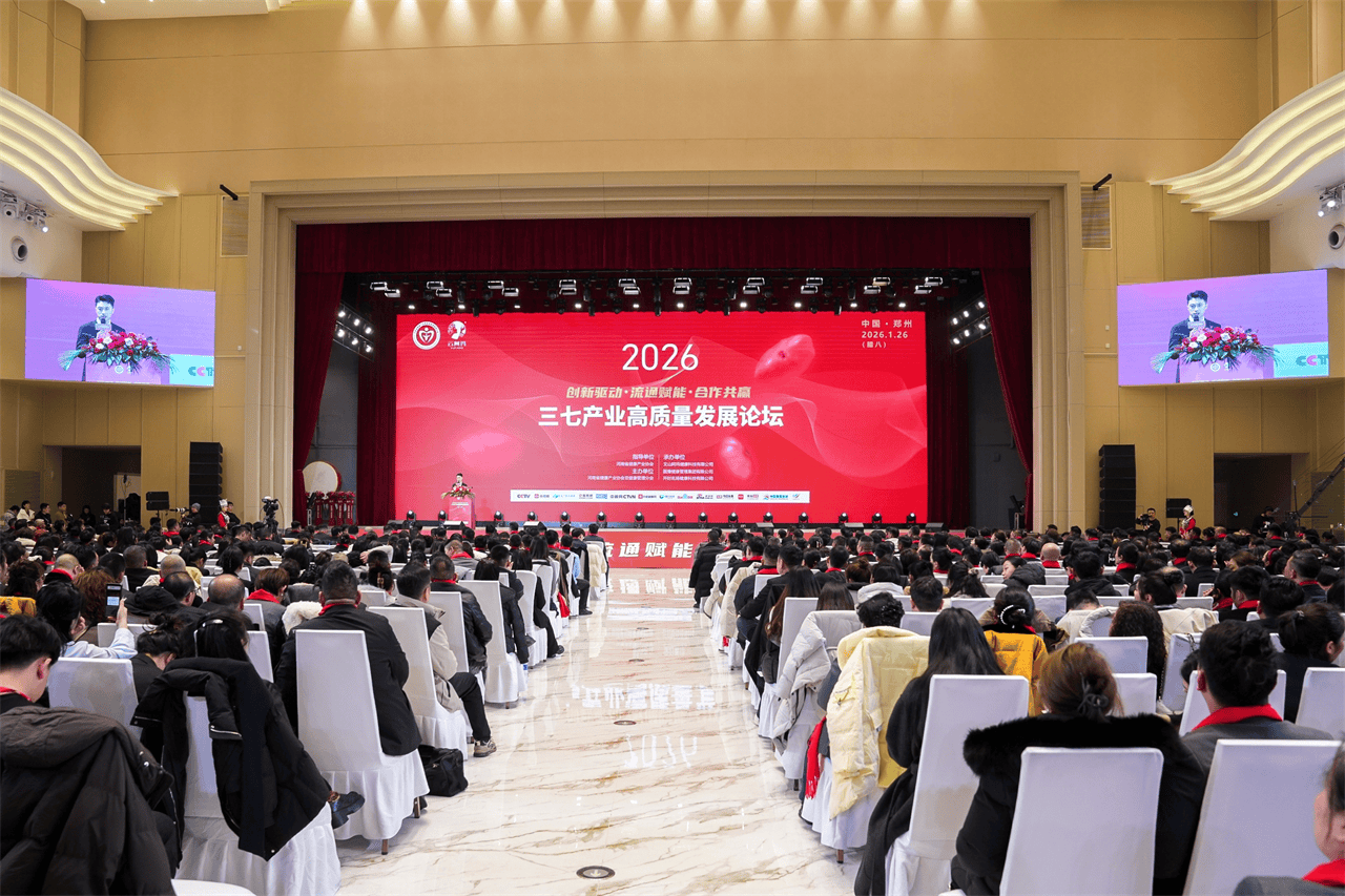 2026年1月26日,由河南省健康产业协会亚健康管理分会主办,文山阿玛健康科技有限公司、国豫健康管理集团有限公司、开封名扬健康科技有限公司承办的“创新驱动・流通赋能・合作共赢——三七产业高质量发展论坛”,在郑州爱妃堡宴会艺术中心顺利落幕。作为一场汇聚行业顶尖资源、聚焦产业核心议题的高端盛会,论坛以多元对话凝聚发展合力,以成果发布激活市场活力,为三七产业高质量发展注入新的时代动能。