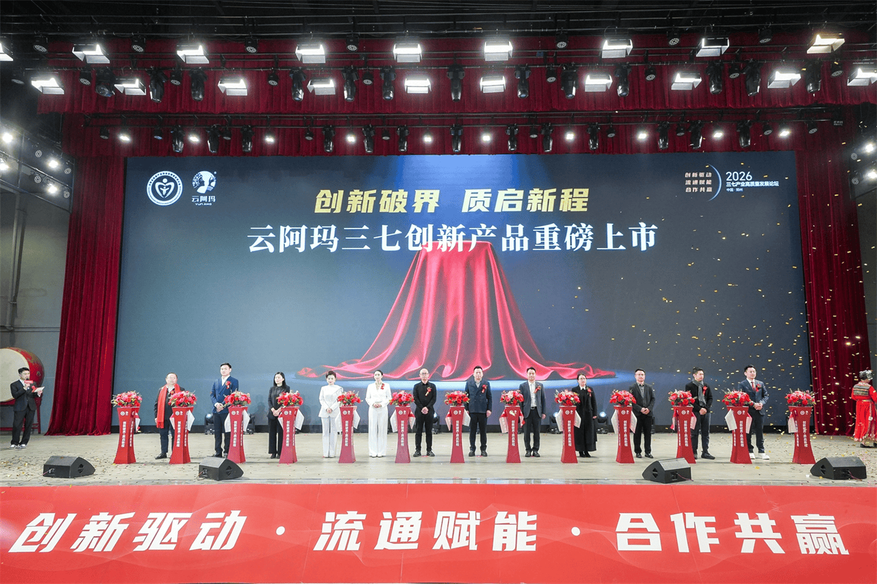 随后,与会十二位重磅嘉宾共同执剪,为云阿玛三七创新产品剪彩,同时“道地三七选云阿玛,全民健康守护同行”计划正式启动,开启三七产品市场化推广的新征程。